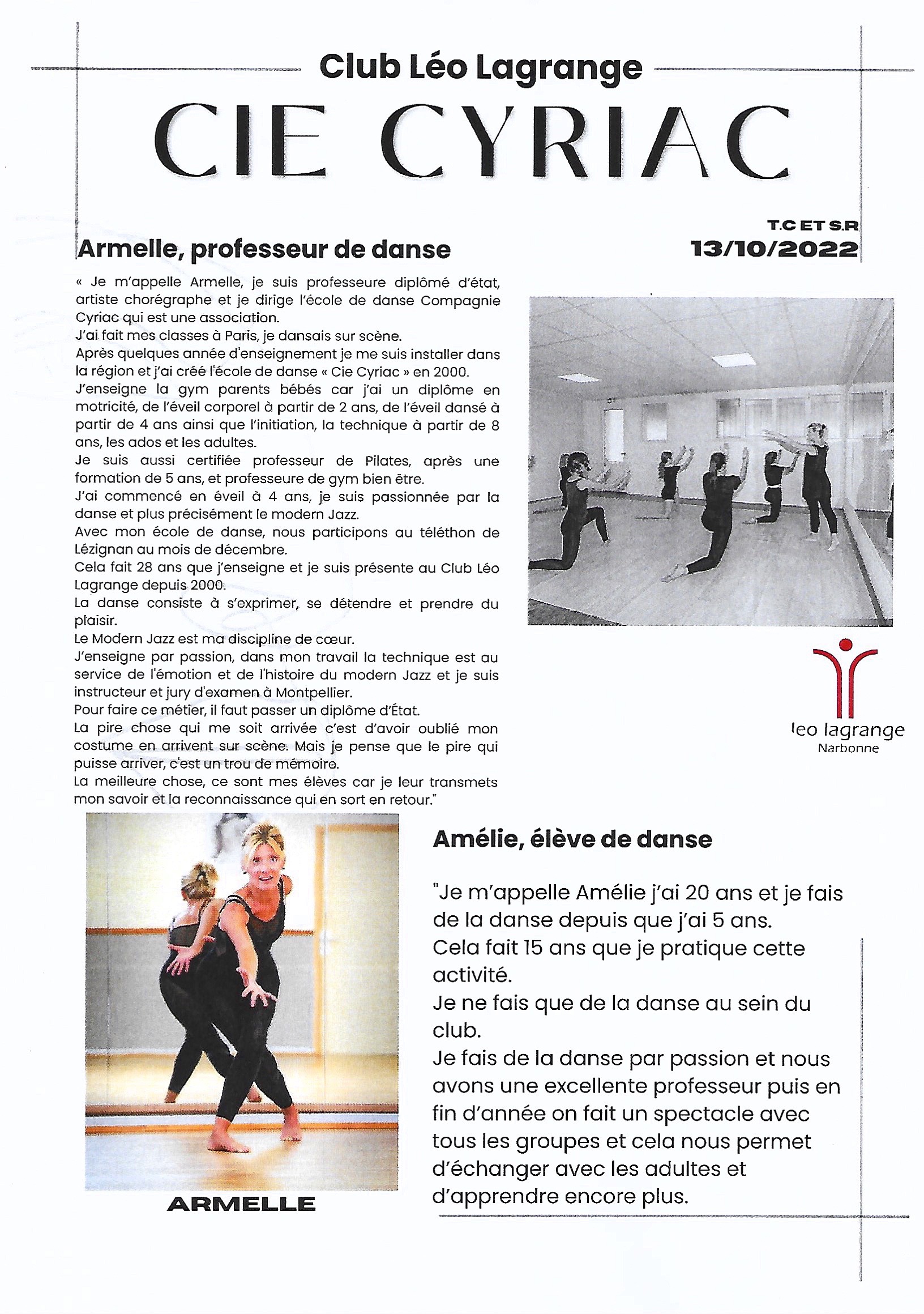 Focus sur… La Compagnie Cyriac 19 octobre 2022 Amandine Retrouvez régulièrement des interviews de nos intervenants, ainsi que des élèves participant à nos activités. Partager : Cliquez pour partager sur Facebook(ouvre dans une nouvelle fenêtre) Facebook Cliquer pour envoyer un lien par e-mail à un ami(ouvre dans une nouvelle fenêtre) E-mail J’aime chargement… Similaire